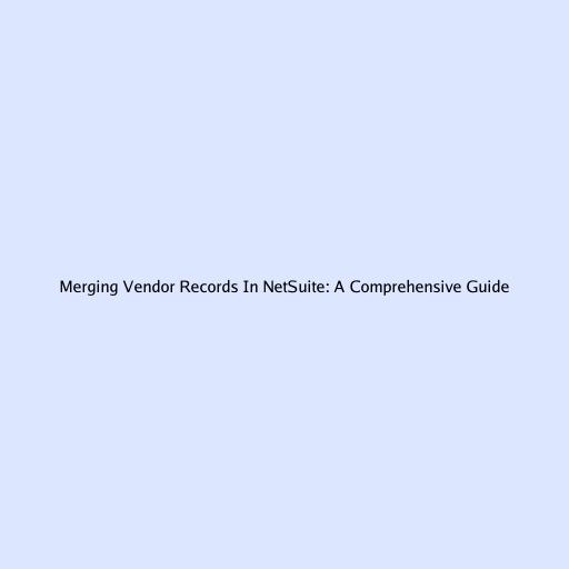 Merging Vendor Records In NetSuite: A Comprehensive Guide