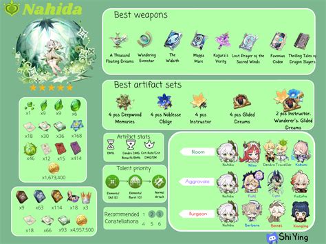 When equipping Nahida as a support , weapon choice is critical for maximizing her effectiveness. You want weapons that either boost her Elemental Mastery or provide other useful buffs for the team. 1. Kagura’s Verity (5-Star Polearm): While this is her signature weapon and excellent for damage, it also provides a significant Elemental Mastery boost and Skill DMG bonus, which indirectly helps her support capabilities by increasing the damage of her Tri-Karma Purification. 2. A Thousand Floating Dreams (5-Star Polearm): This is arguably her best support weapon. It not only provides a massive amount of Elemental Mastery but also grants an Elemental DMG Bonus to nearby party members based on the Elemental Mastery of the equipping character. This is a direct buff to your entire team! 3. Sacrificial Fragments (4-Star Catalyst): Don’t sleep on this 4-star! Its passive ability has a chance to reset the cooldown of Nahida’s Elemental Skill, allowing for more frequent Dendro application and potentially more Elemental Mastery stacking from her skill if you’re running a build focused on EM. 4. Mappa Mare (4-Star Catalyst): This craftable option is a solid choice if you need an EM boost. Its passive grants Elemental DMG Bonus after triggering certain elemental reactions, which can be beneficial in reaction-heavy teams. 5. Widsith (4-Star Catalyst): While more of a damage-oriented catalyst, its random buffs can sometimes provide an EM boost or an Elemental DMG bonus that can indirectly help her support role. Just be mindful of the RNG. 6. Fruit of Fulfillment (4-Star Catalyst): This is a great F2P (Free-to-Play) option. It provides Elemental Mastery and its passive effect can further increase EM after triggering Bloom, Hyperbloom, or Burgeon reactions. When choosing, always prioritize Elemental Mastery. The more EM Nahida has (up to 800), the more potent her Skill’s damage and her Burst’s buffs become. If you have multiple options, lean into those that provide EM or directly buff your team’s damage. Remember, her support power is heavily tied to her EM stat, so stacking it is usually the name of the game. Don’t be afraid to experiment, but keep that EM number high! The goal is to make her a consistent source of Dendro and a valuable amplifier for your entire team’s offensive capabilities. A well-chosen weapon can significantly elevate her support performance, making her a truly indispensable part of your Genshin Impact adventure.