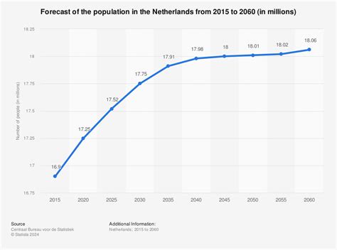 What does the future hold for the Netherlands population ? According to projections, the population is expected to continue growing in the coming decades, although at a slower pace than in the past. Factors such as declining birth rates and an aging population will contribute to this slowdown. By 2050, the population could reach around 19 million people. However, these are just projections, and the actual outcome could vary depending on a range of factors, including immigration patterns, policy changes, and unforeseen events. An aging population presents several challenges. It can lead to increased demand for healthcare services, strain on pension systems, and labor shortages. Policymakers need to address these challenges by implementing reforms to social security systems, promoting healthy aging, and encouraging older workers to remain in the workforce longer. Immigration will continue to play a significant role in shaping the Netherlands population in the future. The number of immigrants entering the country will depend on global events, economic conditions, and immigration policies. Policymakers need to manage immigration effectively, ensuring that immigrants are integrated into Dutch society and that their contributions are valued. In addition, sustainable development will be crucial for accommodating a growing population in a sustainable way. This includes promoting energy efficiency, reducing greenhouse gas emissions, and protecting natural resources. The future of the Netherlands population will depend on the choices we make today. By addressing the challenges and opportunities that come with population change, we can ensure a prosperous and sustainable future for all residents.