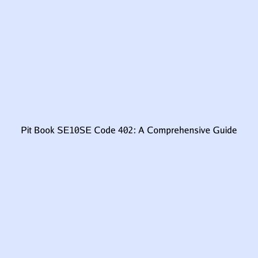 Pit Book SE10SE Code 402: A Comprehensive Guide