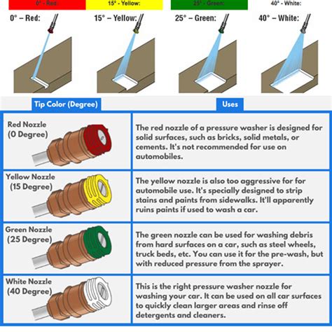 Okay, let’s get into the nitty-gritty of the different types of pressure washer nozzle tips . Knowing what each one does is key to getting the most out of your pressure washer. Here’s a rundown of the most common types: