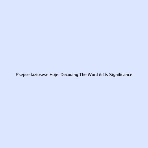 Psepseilaziosese Hoje: Decoding The Word & Its Significance