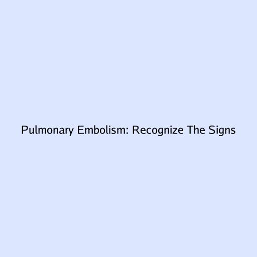 Pulmonary Embolism: Recognize The Signs