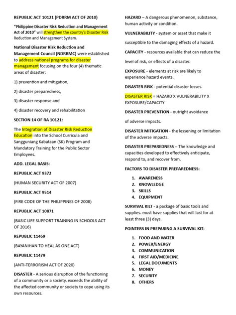 Hey guys! Today, we’re diving deep into Republic Act No. 10121 , also known as the Philippine Disaster Risk Reduction and Management Act of 2010. If you’re wondering what is the focus of Republic Act 10121 , you’ve come to the right place! This landmark legislation shifted the paradigm from a purely disaster response approach to a more proactive and comprehensive disaster risk reduction and management (DRRM) framework. It’s all about building a more resilient Philippines, guys, and understanding this law is key to that goal. The core focus of RA 10121 is to strengthen the disaster preparedness and response capabilities of the country, while crucially emphasizing risk reduction and mitigation before disaster strikes. Think of it as moving from simply cleaning up the mess to actively preventing it in the first place, or at least minimizing the damage when it inevitably happens. This act is a game-changer because it recognizes that disasters aren’t just acts of nature; they are often exacerbated by human factors like poverty, environmental degradation, and poor land-use planning. Therefore, it mandates a multi-sectoral, multi-hazard, and integrated approach to DRRM.