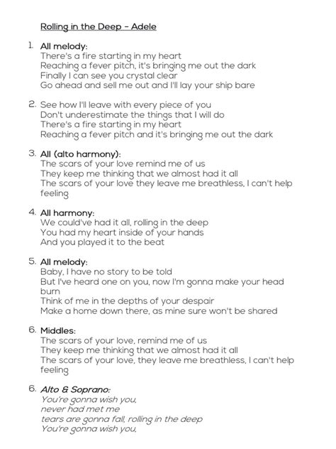 Finally, we arrive at the outro of “Rolling Down in the Deep.” This is where the song begins to fade, but the emotional impact lingers. The outro often serves to reinforce the central theme of the song, leaving the listener with a lasting impression. It might involve a repetition of key phrases from the chorus, a fading melody, or a final, poignant statement. The feeling here is often one of resonance; the emotions explored throughout the song continue to echo long after the music stops. It’s not necessarily about finding a neat resolution, but about acknowledging the enduring nature of the experience. The artist might leave the listener with a sense of acceptance, a quiet melancholy, or a somber realization. The fading nature of the outro can symbolize the slow process of recovery, the lingering effects of trauma, or the ongoing journey of self-discovery. It’s a space for contemplation, allowing the listener to sit with the emotions evoked by the song and to connect them to their own lives. The outro is the final brushstroke on the canvas of the song, leaving a powerful and memorable impression. It’s the moment where the song’s message settles in, and its emotional weight is fully felt. Whether it ends on a note of despair, quiet strength, or unresolved longing, the outro ensures that the journey of ‘rolling down in the deep’ stays with you, prompting reflection and a deeper understanding of the complex tapestry of human emotion. It’s the final lingering note that signifies the end of the musical journey but the continuation of the emotional one for the listener, leaving an indelible mark.