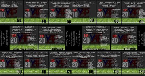 • Tackle Football: Divisions are typically structured by age or grade level, such as 8U (under 8 years old), 10U (under 10), 12U (under 12), and sometimes 14U (under 14). These divisions allow for age-appropriate competition and skill development.