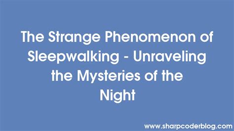 Sleepwalking: Understanding the Mysteries
