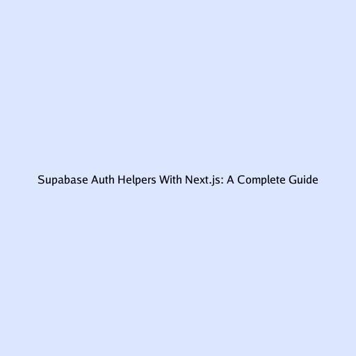 Supabase Auth Helpers with Next.js: A Complete Guide