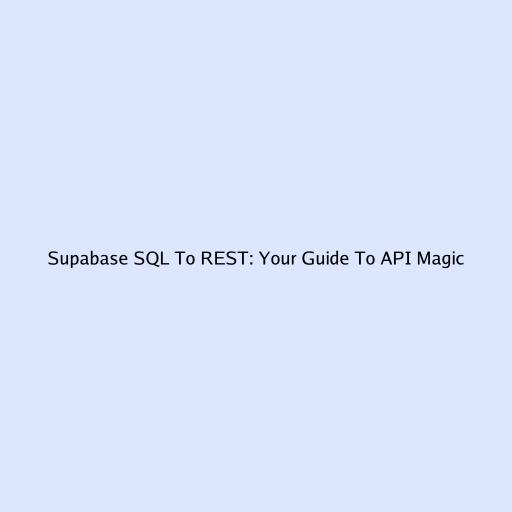 Supabase SQL To REST: Your Guide To API Magic