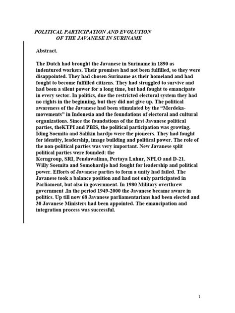 So, what’s the status of Javanese in Suriname today? Well, while it’s not as widely spoken as Dutch or Sranan Tongo, it’s still a vibrant and important part of the country’s cultural landscape. You can hear it spoken in homes, community centers, and at cultural events. There are also radio programs and even some television shows that feature the Javanese language. While the number of Javanese speakers may be declining among younger generations, there’s a growing awareness of the importance of preserving the language and culture. Many young people are now taking an interest in learning Javanese and connecting with their cultural roots. They see it as a way to honor their ancestors and maintain their cultural identity. The Javanese community in Suriname is also actively involved in promoting their language and culture to the wider Surinamese society. They organize cultural festivals, exhibitions, and performances to showcase their traditions and share their heritage with others. These events help to raise awareness of the Javanese culture and promote understanding and appreciation among people of different backgrounds. The Javanese language has also had an influence on other languages spoken in Suriname. Some Javanese words and phrases have been incorporated into Sranan Tongo and other local languages, reflecting the cultural exchange that has taken place between the Javanese community and other groups in Suriname. This linguistic blending is a testament to the integration of the Javanese culture into the broader Surinamese society. Today, the Javanese language in Suriname is a symbol of cultural identity, resilience, and adaptation. It represents the remarkable journey of the Javanese people from Indonesia to South America and their enduring commitment to preserving their cultural heritage. It’s a story that deserves to be told and celebrated, highlighting the richness and complexity of human migration and cultural exchange. From generation to generation the culture is something that is amazing and is very unique .
