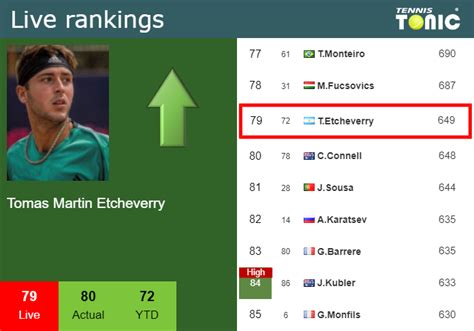 Analyzing Etcheverry’s ranking trends over the past year provides valuable insights into his progress and potential. Has he been steadily climbing the ranks, or has his ranking fluctuated? Understanding these trends helps us assess his consistency and identify periods of significant growth or decline. If his ranking has been on an upward trajectory, it indicates that he has been consistently performing well and improving his game. This could be attributed to factors such as better training, improved strategies, or increased mental toughness. On the other hand, if his ranking has fluctuated, it could be due to inconsistent performances, injuries, or changes in his coaching staff. Examining the specific events that led to these fluctuations can provide valuable lessons and help him avoid similar pitfalls in the future. Overall, analyzing Etcheverry’s ranking trends allows us to gain a deeper understanding of his journey as a tennis player and predict his future potential. By identifying patterns and trends, we can better appreciate his achievements and understand the challenges he has overcome along the way.
