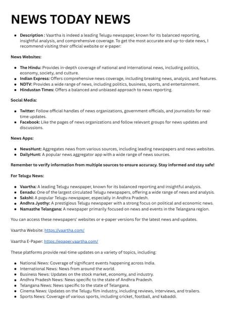 And there you have it, folks! Now you have a comprehensive guide on how to navigate the world of Telugu news . From traditional newspapers and TV channels to the digital world of websites, apps, and social media, there are tons of ways to stay updated. Remember to be a savvy news consumer, always cross-reference information, identify reliable sources, be aware of biases, and verify the facts. By following these simple steps, you can stay informed and connected to the world around you. Now go out there and enjoy your daily dose of Telugu news ! You’re ready to dive into the latest updates, stories, and happenings. Don’t forget to keep an eye out for news to stay updated on what’s happening. Go enjoy your day!