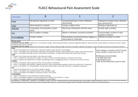 Now that we’ve broken down the components and understood its importance, let’s get down to the nitty-gritty: how do you actually use and interpret the FLACC score ? It’s not just about glancing at someone; it’s about systematic observation, guys. First off, ensure the patient is in a relatively stable state before you start assessing. You don’t want to score them while they’re being moved or during a chaotic moment if you can avoid it. Try to observe them for a minute or two in their usual environment, whether that’s their bed, a chair, or even being held. The key is to get a true picture of their baseline behavior when experiencing discomfort. Remember, each of the five categories – Face, Legs, Activity, Cry, and Consolability – is scored from 0 to 2. Let’s quickly recap what those scores mean: 0 = No apparent pain; 1 = Mild discomfort; 2 = Moderate to severe discomfort. You’ll systematically observe the patient for each component and assign a score. For example, if a child has a slight grimace and keeps their legs tensed, that might get a ‘1’ for Face and a ‘1’ for Legs. If they are moaning intermittently, that’s a ‘1’ for Cry, and if they can be soothed with a hug, that’s a ‘0’ for Consolability. Their total FLACC score would then be 1+1+0+1+0 = 3. Once you have assigned a score to each component, you add them up to get a total score ranging from 0 to 10. Interpreting this total score is critical . Generally, a score of 0 means no pain. A score of 1-3 indicates mild pain, and this might warrant comfort measures and close observation. A score of 4-6 suggests moderate pain, typically requiring intervention, such as administering prescribed pain medication. A score of 7-10 signifies severe pain, demanding immediate intervention and potentially a reassessment of the pain management plan. It’s crucial to remember that these are guidelines, and clinical judgment always plays a role. A score of 3 might be concerning in one patient but manageable in another, depending on their baseline and other factors. Consistency is also key . If multiple people are assessing the same patient, try to standardize your observations to minimize variability. Training and practice are your best friends here! It’s also important to use the FLACC score in conjunction with other clinical information, such as the patient’s medical history, the reason for their pain, and any other vital signs or observations. The FLACC score is a tool , not the entire picture. Reassessment is non-negotiable . Once an intervention has been administered for pain, you must reassess the FLACC score after an appropriate interval to see if the pain has lessened. This feedback loop ensures that we are effectively managing the patient’s pain. For instance, if a child’s FLACC score was 8 after a procedure, and after receiving pain medication, it drops to 2, you know the intervention was successful. If it remains 7 or 8, it means the medication isn’t working as effectively as hoped, and you need to consider other options or dosages. Mastering the FLACC score takes practice and attention to detail, but it’s an incredibly rewarding skill that directly contributes to a patient’s comfort and recovery. So go out there, observe carefully, and make a real difference!