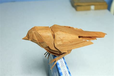 6. Add final touches: You can add eyes using a marker or pen. You can adjust the wings a little bit to make it look even more realistic. This is where you can be creative and personalize your paper sparrow . Feel free to experiment with different wing angles and head positions to give your bird a unique look.