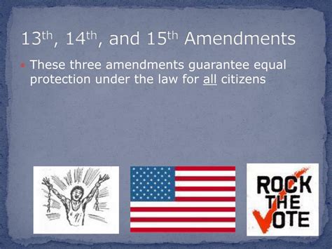 To wrap things up, the 13th, 14th, and 15th Amendments were a pivotal moment in American history. They dramatically changed the legal and social landscape of the United States. They abolished slavery, defined citizenship, and gave Black men the right to vote. However, the story doesn’t end there, guys. These amendments were the beginning of an ongoing struggle for equality, justice, and the full realization of the rights enshrined in the Constitution. They created a foundation for civil rights movements. These movements fought to expand the promises of the amendments to all Americans. The legacy of these amendments is still very present in our legal and social debates. They continue to shape our understanding of citizenship, equality, and the pursuit of justice. Remember, these amendments are not just old documents; they are a living part of our history and our ongoing struggle for a more just and equitable society. The fight for true equality is a journey, and these amendments were a major step forward, but there’s still a lot of work to be done. It is important to keep these amendments in mind. It’s important to remember that progress requires constant vigilance and a commitment to justice for all.