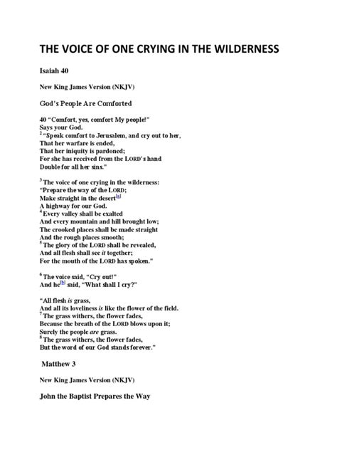 Now, let’s also consider the wilderness itself. This isn’t just a place. It symbolizes the challenges, isolation, and lack of resources that often characterize the environment for such voices. The wilderness can be a physical location, but it can also be the metaphorical space of opposition, where the voice is met with resistance, apathy, or hostility. The voice is crying, which suggests a sense of urgency, despair, and an attempt to break through the indifference of the surroundings. It’s not just a casual statement; it’s a desperate plea, a call for attention and action. It’s a challenge to the status quo and a call to a better way of life. The voice can be a person, an ideal, or a movement. This historical context is essential because it gives us a framework for understanding the deeper meaning of the phrase. It’s not just about a sound in a remote location; it’s about a message of hope, warning, or change being delivered in a place of hardship and challenge.