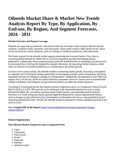 One of the most significant trends is the increased demand for plant-based proteins . As consumers become more health-conscious and environmentally aware, there’s a growing interest in plant-based alternatives to meat and dairy products. This trend is driving demand for oilseeds like soybeans, which are a key ingredient in many plant-based protein products. The rise of veganism and vegetarianism, coupled with concerns about the environmental impact of animal agriculture, is expected to further fuel this demand. Companies are investing heavily in developing new and innovative plant-based products, creating new opportunities for oilseed producers.