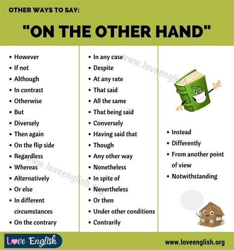 Now, while “in the other hand” is a great tool, it’s not the only one in your communication toolbox, guys! Sometimes, you might want to mix things up or find a phrase that fits the vibe even better. So, let’s chat about some awesome alternatives. If you’re looking for a direct swap that’s super common, “on the other hand” is your go-to. It functions almost identically and is widely accepted. For a slightly more formal tone, you could use “conversely” or “however” . These signal a clear shift in thought and work brilliantly in essays or more serious discussions. For example, “The initial investment is high. However , the projected returns are substantial.” See? Clean and effective. If you want to introduce a different perspective without necessarily implying a direct opposition, phrases like “alternatively” or “by contrast” can be perfect. “This approach is efficient. Alternatively , we could explore a more sustainable method.” This acknowledges another possibility without negating the first. Sometimes, a simple conjunction can do the trick! “But” or “yet” can be surprisingly effective for introducing contrast, especially in more informal settings. “He’s incredibly talented, but he lacks discipline.” It’s concise and gets the point across. “Nevertheless” is another solid option for acknowledging something while still presenting a counterpoint. “The task is challenging. Nevertheless , we are confident in our team’s ability.” Think about the specific relationship between the two ideas you’re connecting . Are they direct opposites? Is one a concession to the other? Is it just a different angle? Choosing the right connecting phrase makes your message clearer and more impactful. So, don’t be afraid to experiment! Having a variety of these phrases in your back pocket will make your arguments more dynamic and your communication skills shine.