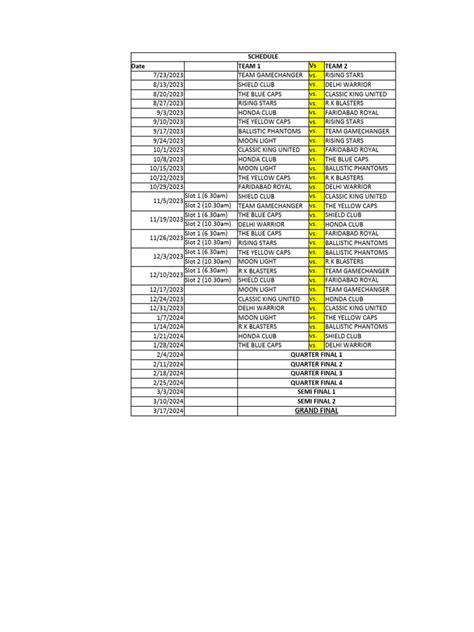One of the primary goals of a tournament schedule is to minimize conflicts and delays. By carefully planning match timings and allowing sufficient buffer periods, you can prevent matches from running late and disrupting the flow of the tournament. This is especially critical in tournaments with tight deadlines or limited venue availability. A well-thought-out schedule anticipates potential issues and incorporates strategies to mitigate them, ensuring that the tournament stays on track and finishes on time.